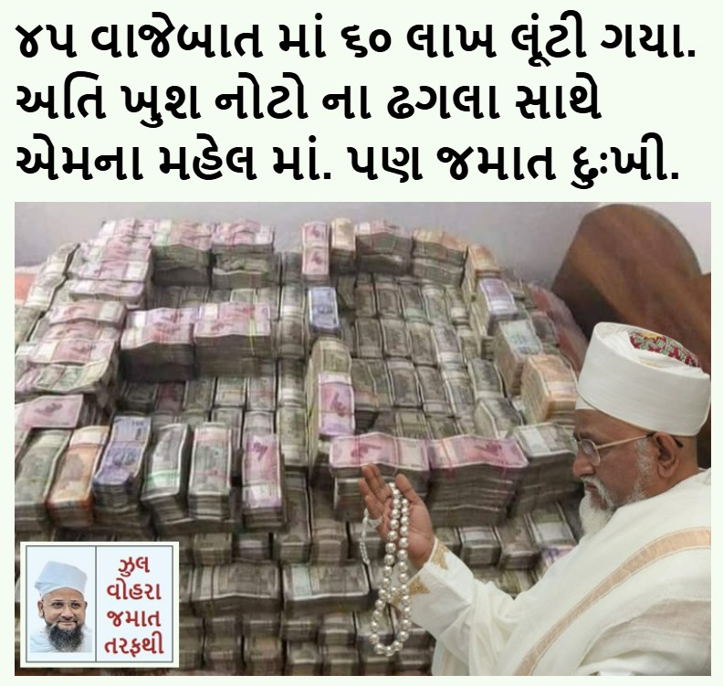 | 101 | | 99. Sawalaj khoto chhe. Jawwar na khisa mathi paisa kadhi le pan ene khabar na pade e halat ma chori karnar ghano moto gunehgar kehway.pan jyare zawwar ni pocket ma koi haat nakhe ane ene khabar chhe k aa chori Kari rayo chhe to chor no kasur nathi. Asli waat par aawiye. Je zawwaro dawat ni announce kareli tour ma jay chhe emne khabar chhe k tour package ma shu include chhe.dawat saame chali ne bolawta nathi. Bahu oosul wala how to eno tour ma naa jaaw. Ek biji waat. Harek waat ma dawat na wwank karnar potana zameer ne puchhe k shu e lko badha gunah thi door chhe? Je cheez ni shariyat ma manai chhe enu chust pane palan thaych? Koi dudhno dhoelo nathi. Badhana ma ebb chhe. Pouchho tamari jaat ne su tamari income halal ni chhe? Roj bebuniyad waato phelawwi Geebat nathi? Mumeen bhaio ma samp no badle division kari ne fasad karwo gunah nathi? Maa baap bhai bahen na haq ada karo chho? Juth thi parhez karo chho? Je koi aa badhi badi thi door hoy ek bija par patthar mare.( Jinke ghar shise ke ho woh dusro ki aur pathhar nahi phenka karte). Last, Dr Zulqarnain ne daai banwama jo interest na hoy to biji jamaat ni waataj kya aawi? Ammar nu naam khoti rite ouchhalu chhe. Momino jara socho |